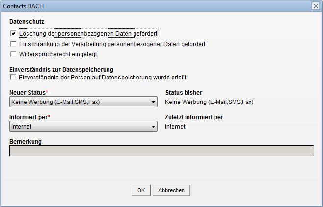 - Setzen des Kommunikationsstatus „Nicht kontaktieren“