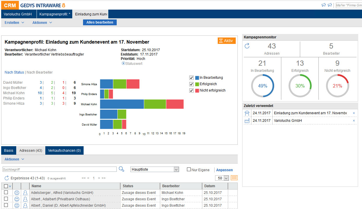 - Kampagnen-Widget zur Anzeige und Bearbeitung aus den Adressen heraus