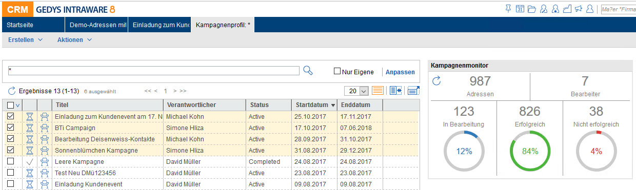 - Massen-Aktionen zum schnellen Zuweisen von Adressen zu Kampagnen