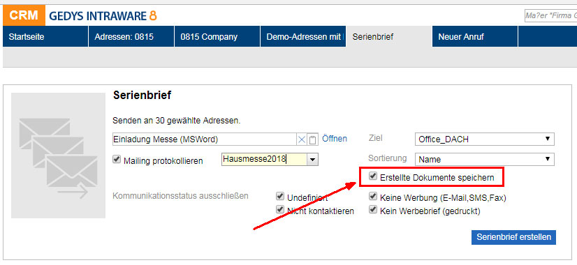 Bei Word-Serienbriefen aus dem Web Client werden nun Platzhalterdokumente mit Verweis auf die verwendete Vorlage erzeugt. Damit wird die Anzeige von Serienbriefen in der 360° Verknüpfungsansicht je Adresse möglich. In der Serienbriefhistorie kann jetzt über einen Link die verwendete Vorlage geöffnet werden.